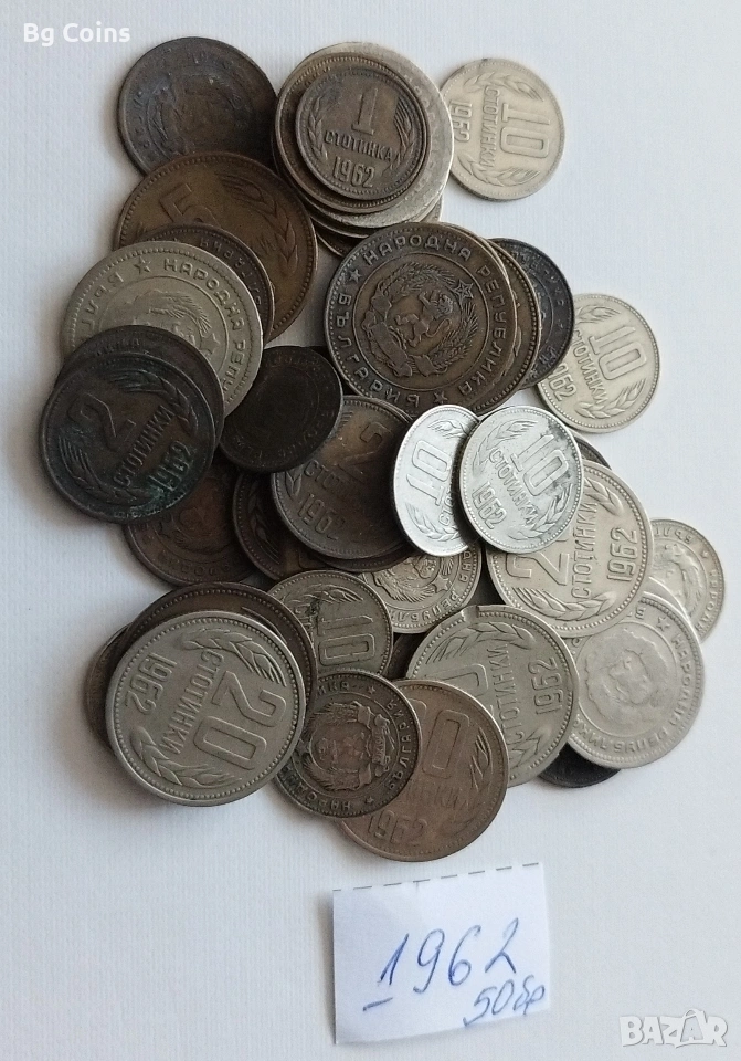 Лот 1962 България 50 бр, снимка 1 - Нумизматика и бонистика - 54329913 Лот 1962 България 50 бр, снимка 2 - Нумизматика и бонистика - 54329913 1/2