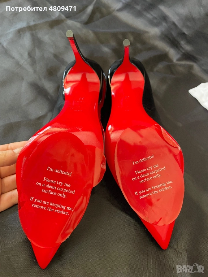 Продавам чисто нови, само пробвани, оригинални Кристиан Лубутен Kate токчета. Получих ги като подарък, но не са носени – само са пробвани. Нямат кутия, тъй като беше изхвърлена след покупката. Обикновено нося номер 38, но при тези токчета ми хлъпват леко. Размерът е 38, както е обозначено, но просто не ми пасват добре, затова ги продавам. Не са захабени, не са стъпвани по земята – само са пробвани. В комплект идват и автентични, платнени торбички на марката, които при допир се разпознават като оригинални. Няма сертификат, но от снимките и торбичките ще видите, че са автентични. Ако имате въпроси или нужда от допълнителни снимки, не се колебайте да пишете.