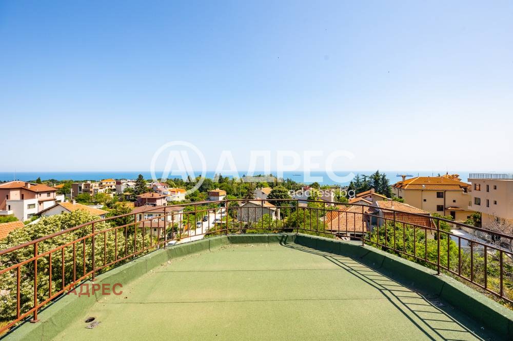 Само от Адрес! Представяме Ви самостоятелна четириетажна сграда, разположена в собствен парцел в престижния и живописен район местност 'Долна Трака'. На обща разгъната площ от 813 кв.м са разположени два тристайни и два многостайни апартамента, по един на всеки етаж. Жилищата са изцяло обзаведени и оборудвани. На ниво полусутерен в сградата е изграден СПА център, който разполага с басейн, сауна, зона за релакс. Дворното място е равно, с правилна форма и площ от 867 кв.м. От панорамната тераса се открива красива морска гледка. Имотът е подходящ за развиване на бизнес и туризъм или за собствено ползване.