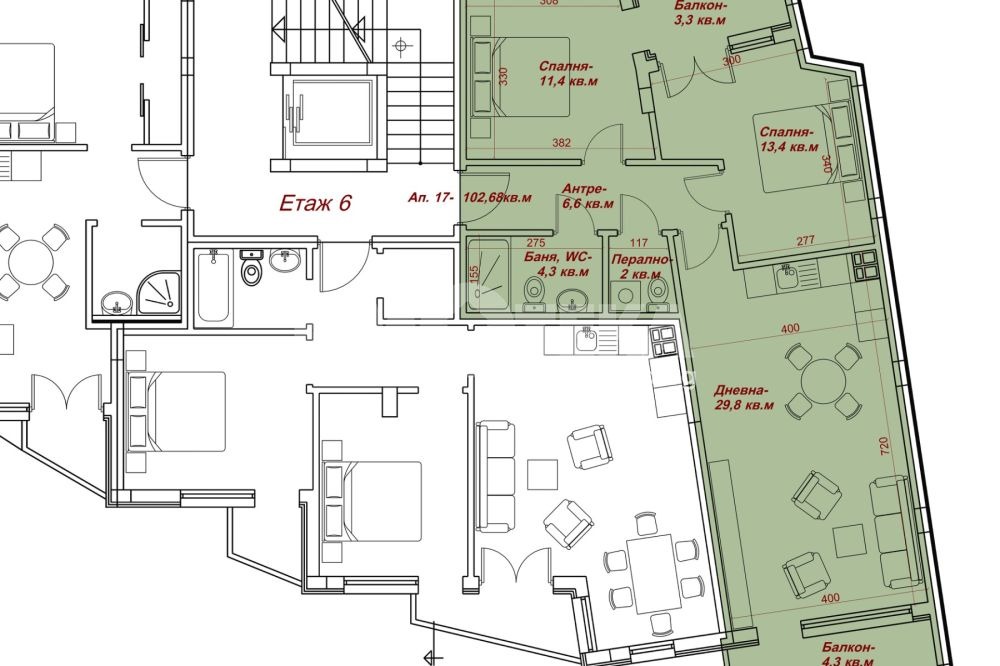 Представяме Ви просторен тристаен апартамент с отлично разпределение, разположен в новострояща се бутикова сграда с модерна визия и перфектна локация в сърцето на града.