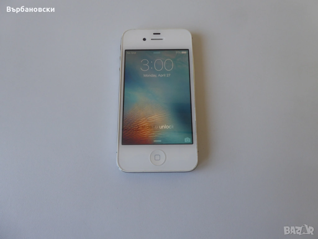 Много запазен Apple iPhone 4S White 16GB.работещ с всички оператори.Капацитет на батерията 91%.Комплект с оригинален кабел за зареждане и трансфер.Версия на IOS 9.3.6.Без бартери и коментар на цената.