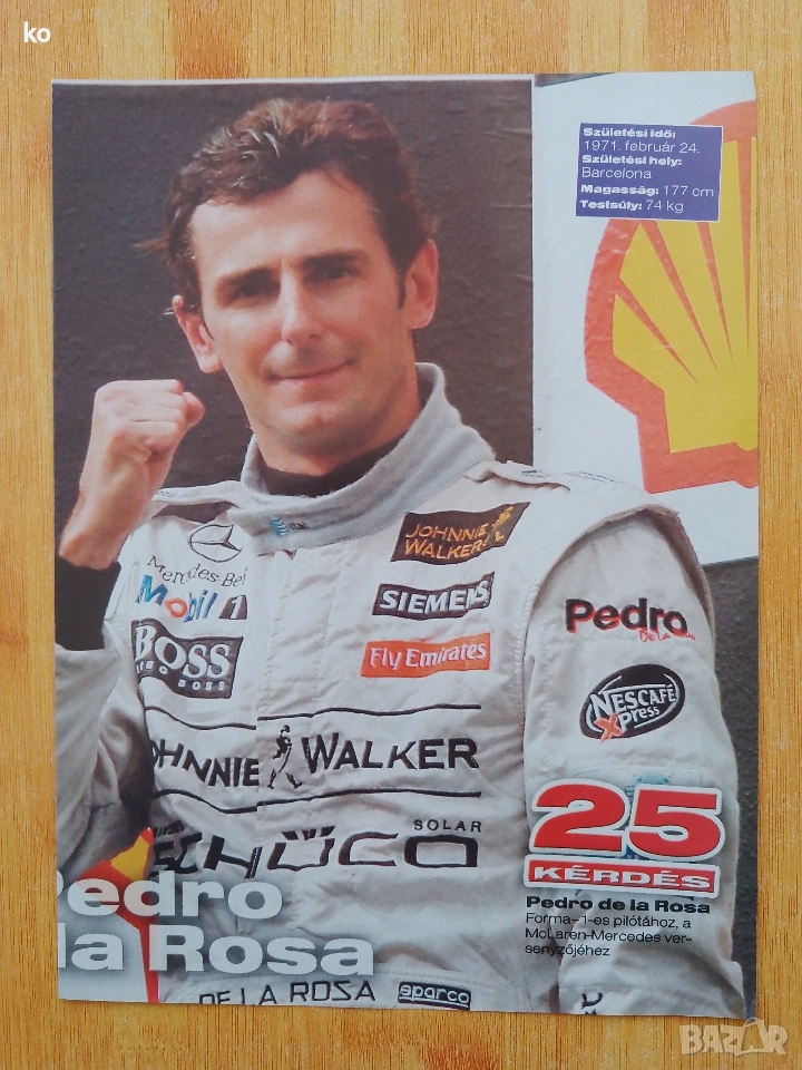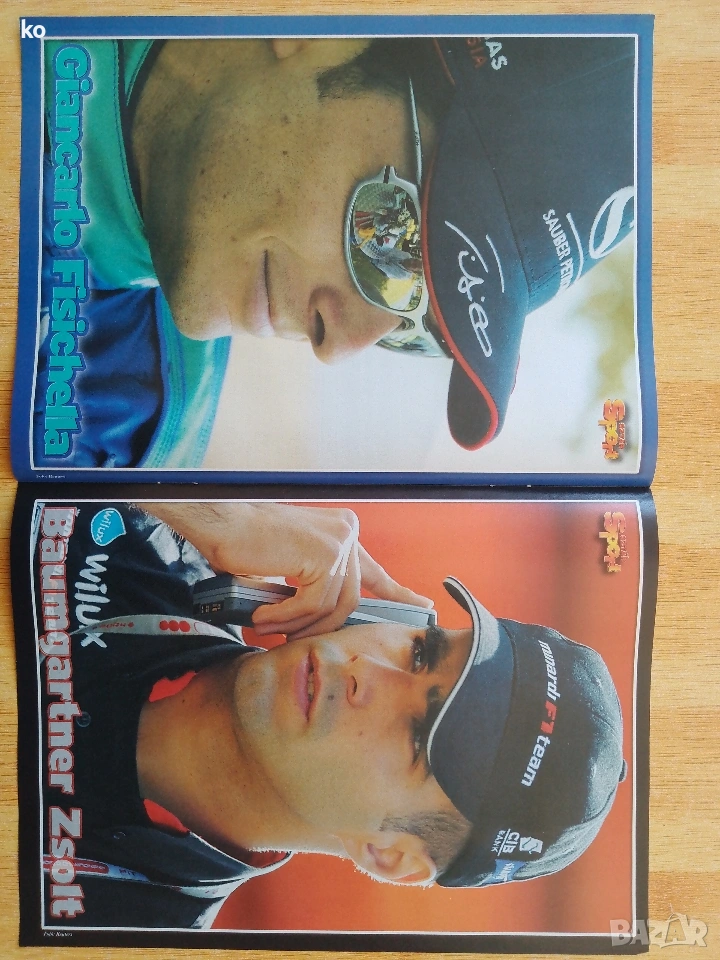 А3 размер -Фисикела+Золт-2евро,Золт-1 евро, Хамилтън -3 евро.А4 размер Монтоя,Кутард,Трули+Бътън,Монтоя, Райконен,20 TH, Кутард+Вебер,Маса-1,5 евро за брой.А4 размер Френцен,Диниз,Хейдфилд,Вебер,Клиен,Роса,Вюрц-1 евро за брой.В перфектно състояние,от чужди списания.