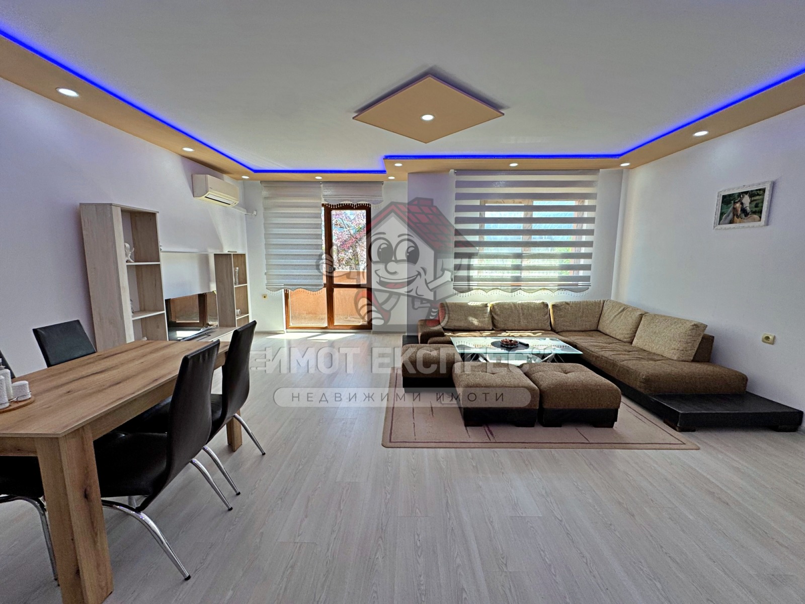 Тристаен обзаведен апартамент, ново строителство, с чиста площ 80.89кв.м, състоящ се от дневна с кухненски бокс, две спални, Г-образен коридор, баня и тоалетна, две тераси, с панорамна гледка към града и планината. Апартаментът е с южно изложение. Към него има 7.822% ид.части от общите части на сградата. Продава се заедно с изба, с площ 4кв.м