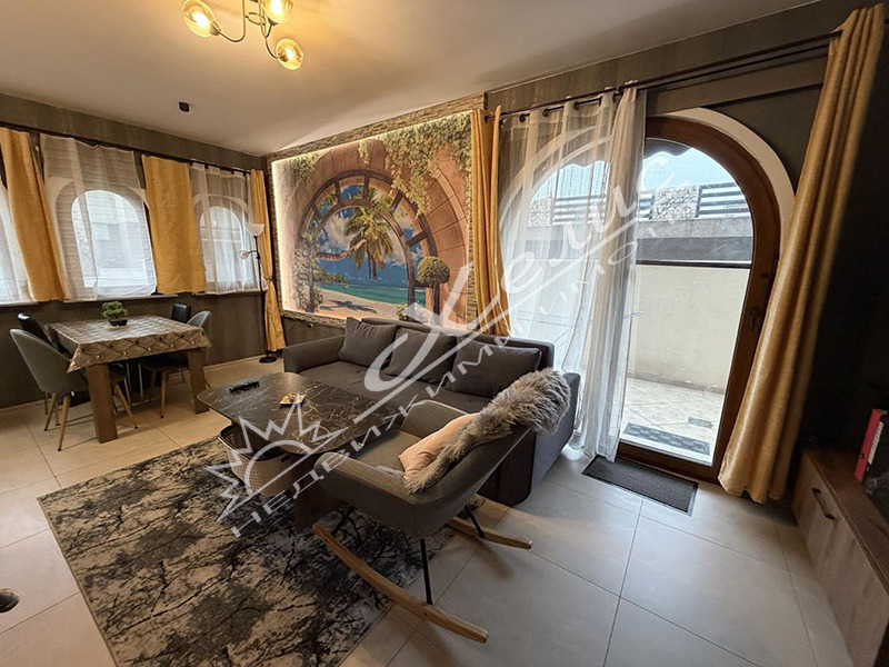 Двустаен апартамент, разположен в новопостроения комплекс Гранд Вилидж, находящ се в с. Кошарица. Комплексът се намира в тих и спокоен район, в подножието на Стара Планина, съчетание на чист въздух и красива природа. Апартаментът е разположен на партерен етаж в малка и тиха сграда, което гарантира уединения и комфорт. На площ от 57 кв.м са разпределени всекидневна с кухненски кът, спалня, коридор, баня с тоалетна, отделна тоалетна и голяма тераса. Апартаментът се продава с обзавеждането.