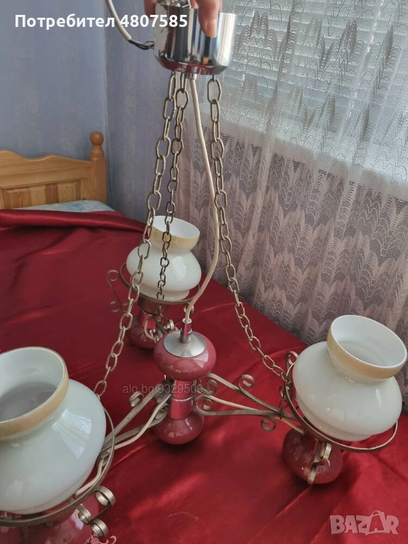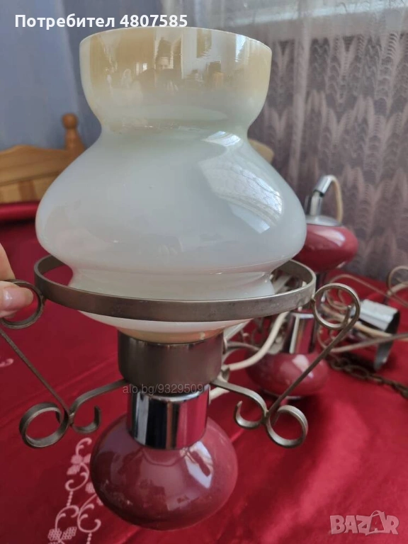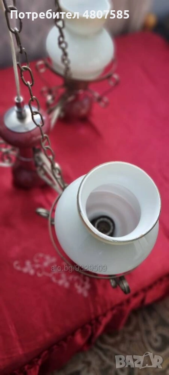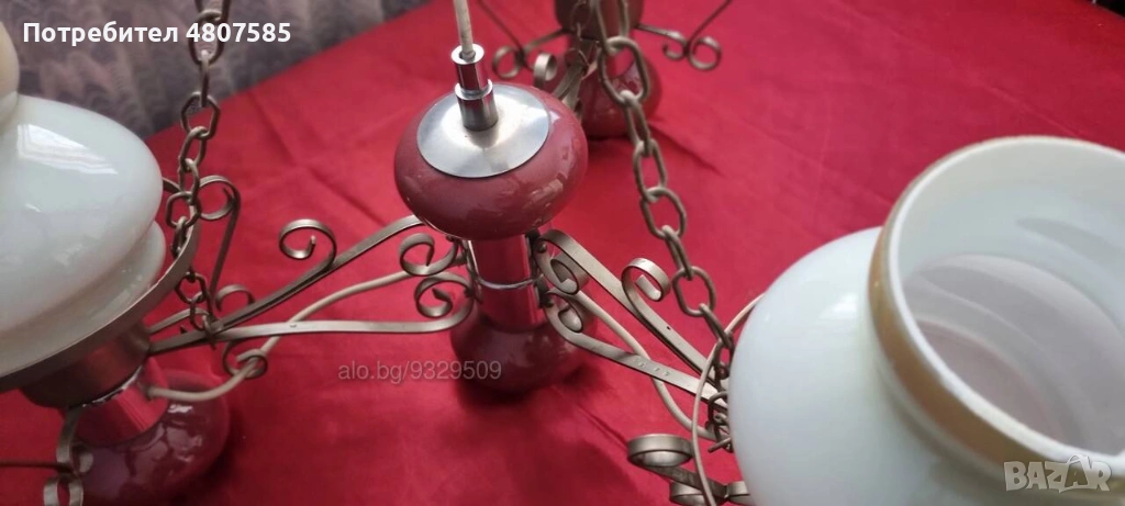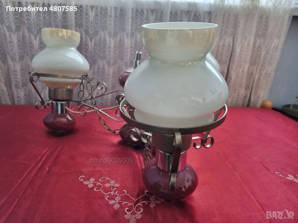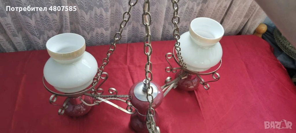 Продавам старинен полилей с три лампи, стъклени, с керамични тела