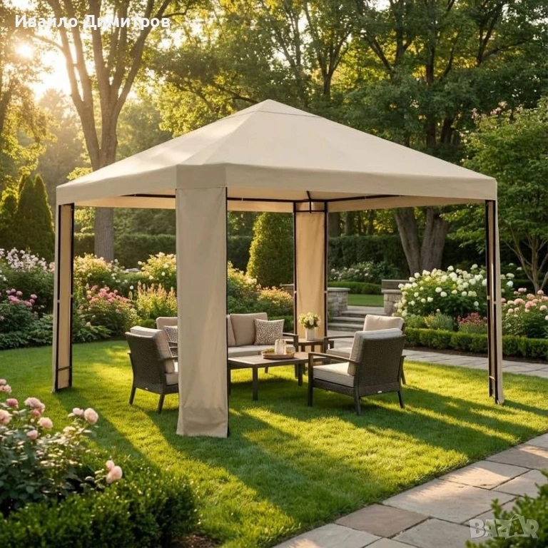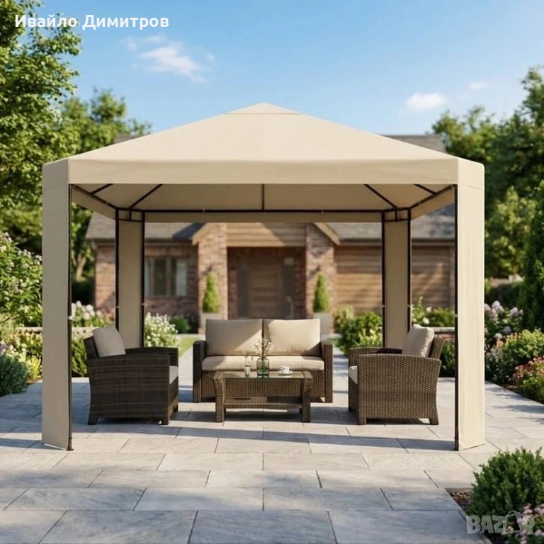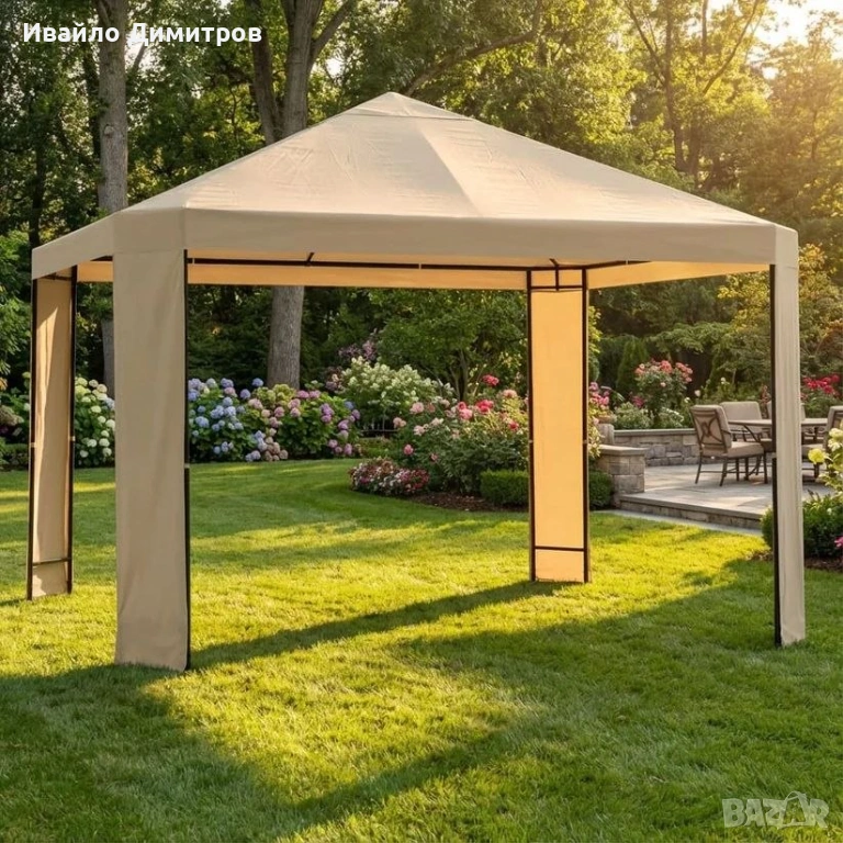 Добавете стил и защита към вашите моменти на открито с този практичен и изискан павилион! С размери 3 х 3 метра и здрава конструкция, той е идеален за събития на открито, градински партита или спокойни следобеди в двора. Леката и удобна за монтаж конструкция го прави практичен избор за всяко пространство.