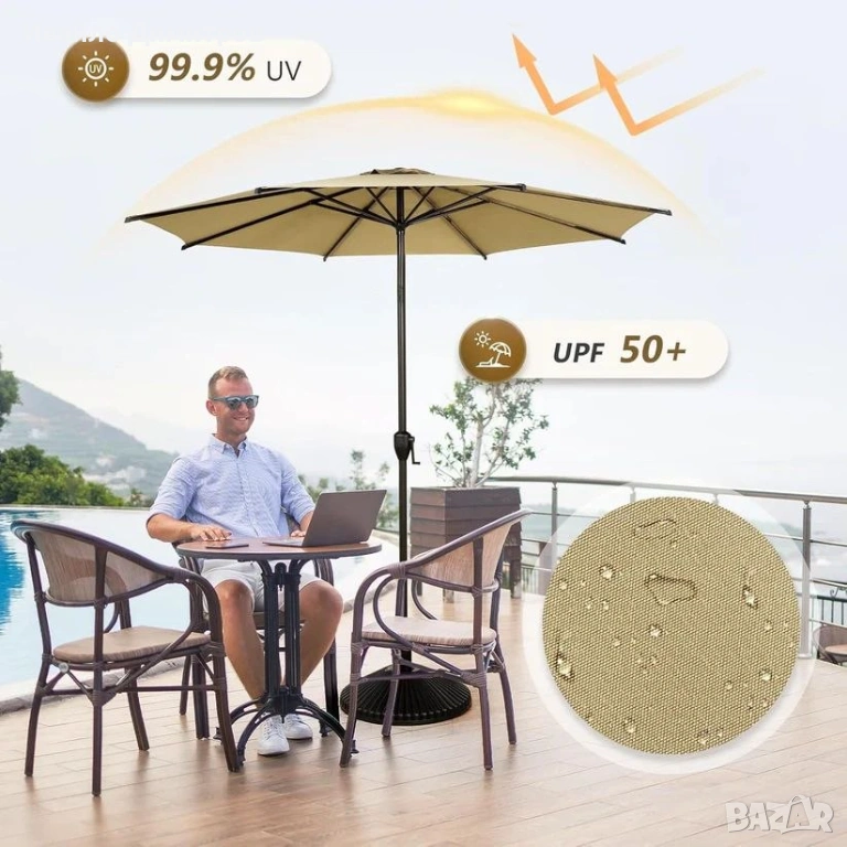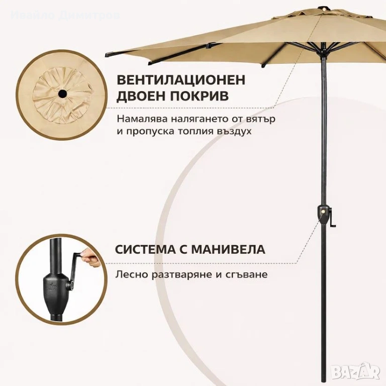 градински чадър е перфектно решение за предпазване от вредните UV лъчи на слънцето. Здрава стоманена конструкция, прахово боядисана.