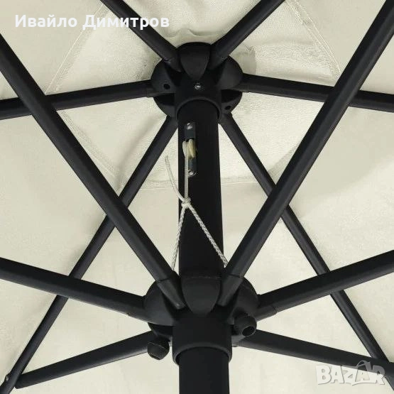 Здравият алуминиев прът и 6-те здрави стоманени спици правят чадъра много стабилен и устойчив. Нашият градински чадър се отваря и затваря удобно, благодарение на манивелата. Артикулът се сглобява лесно.