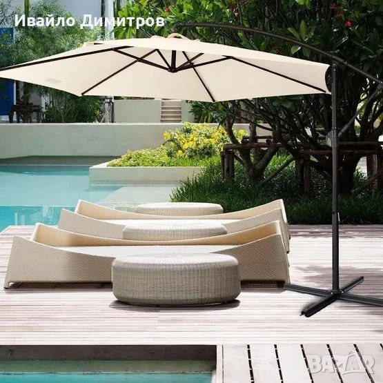 градински чадър с диаметър 3 метра в пясъчнобял цвят. Създаден да ви осигури оптимална защита от слънцето, този чадър е подходящ както за дворове и градини, така и за големи тераси и балкони.