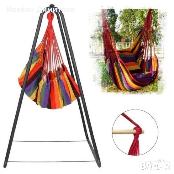 Лесен за окачване- Закачете я на кука, C-стойка или клон в задния си двор – където си изберете. След това сте готови за люлеене!