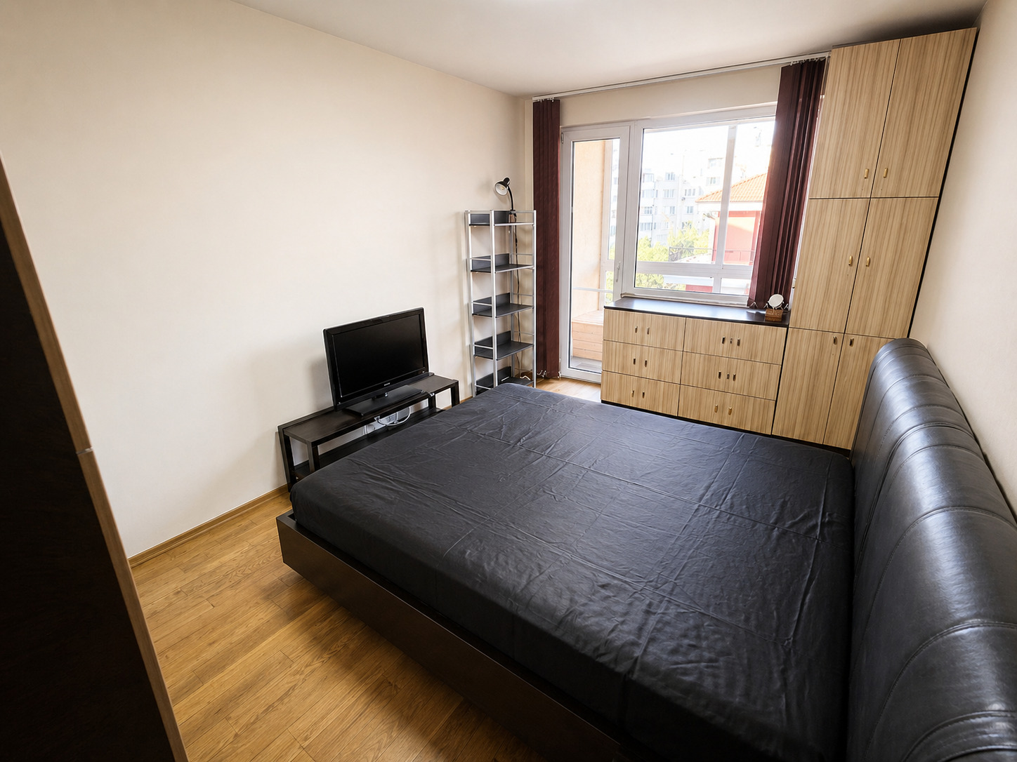 спалня с голямо двойно легло и голям гардероб,