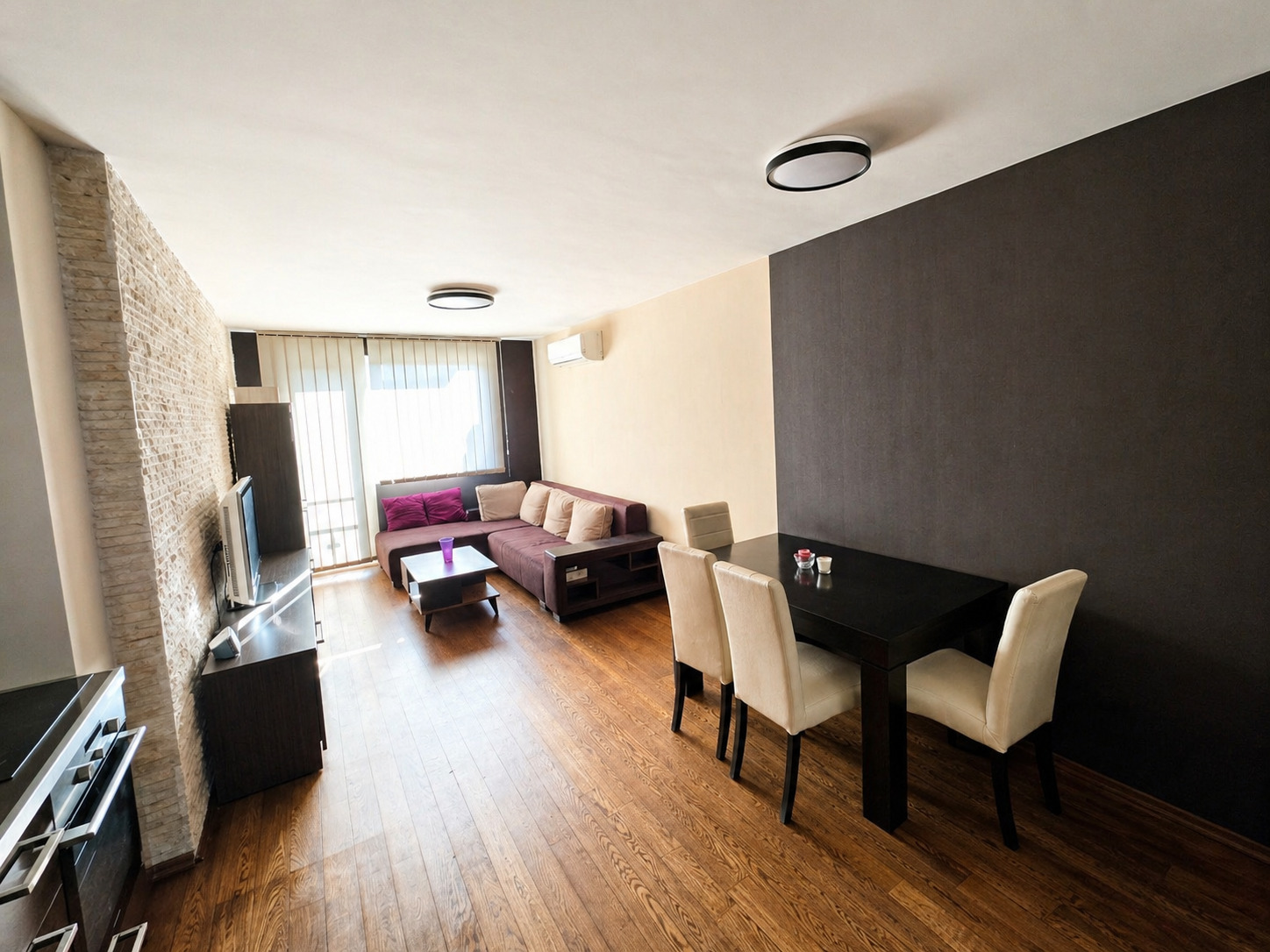 Отдава се слънчев и уютен двустаен апартамент, напълно обзаведен и готов за нанасяне. Жилището е функционално разпределено и много добре поддържано, подходящо за сам човек или двойка.