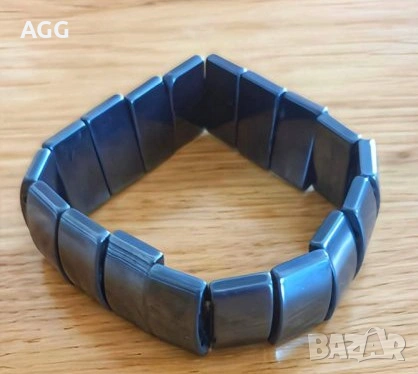 Конструкция:Изработена от плътно подредени правоъгълни елементи, нанизани на еластична основа за удобно прилягане към всяка китка.