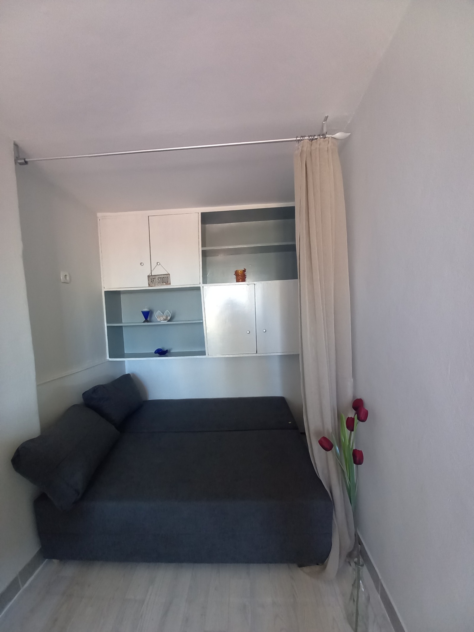 До НДК! Отдава се малко обзаведено ателие на ет. 5 от общо 5 без асансьор, в сграда с много добре поддържани общи части. Състои се от стая, антре с вграден гардероб и баня с тоалетна. Обзавеждането е показано на снимките. Отоплението е на климатик, но има и ТЕЦ. Имотът може да се ползва не само като ателие за творческа дейност, но и за живеене. Подходящо за сам човек. За повече подробности и огледи: 0896 902 228.