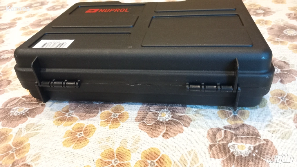 Марка Nuprol. Външни размери 300 x 256 x 80 мм Вътрешни размери 295 x 187 x 65 мм. Основа 32,5 мм Капацитет 3,5 л. Вълнообразни пяна от вътрешната страна. Плъзгащи се ключалки 2 бр.