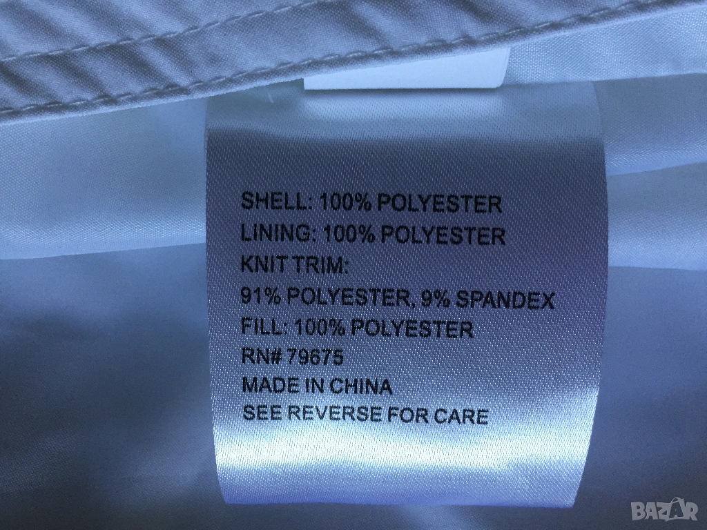 гръдна обиколка 126 см., обиколка на талията 122 см. Състав: 100%