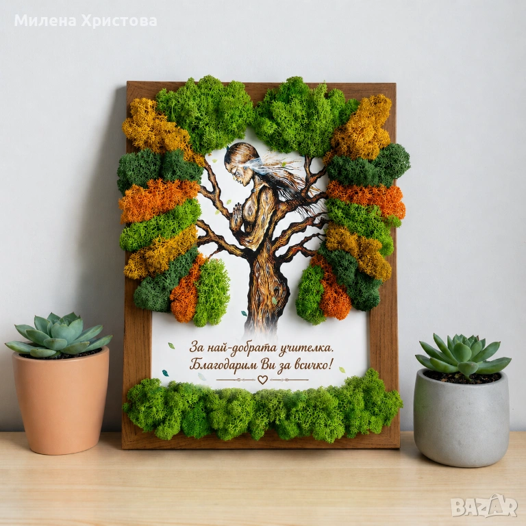 Подарък за учителка със скандинавски мъх → Обява 54332506