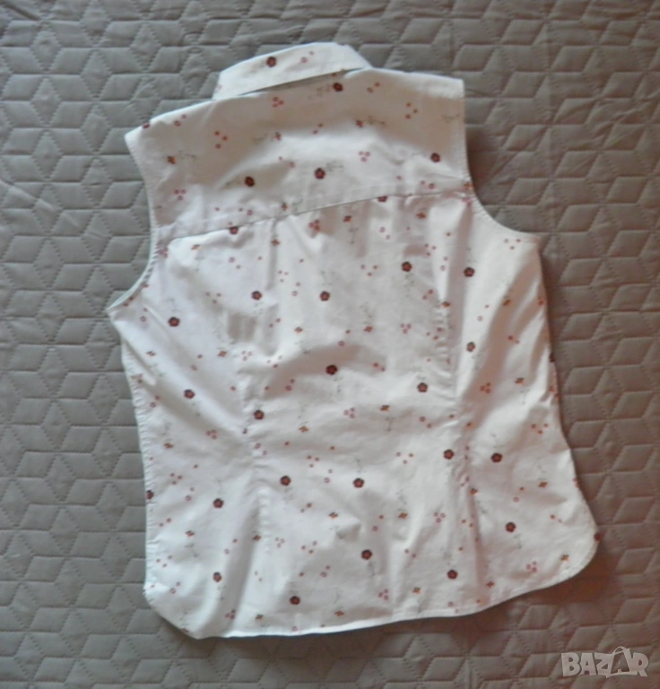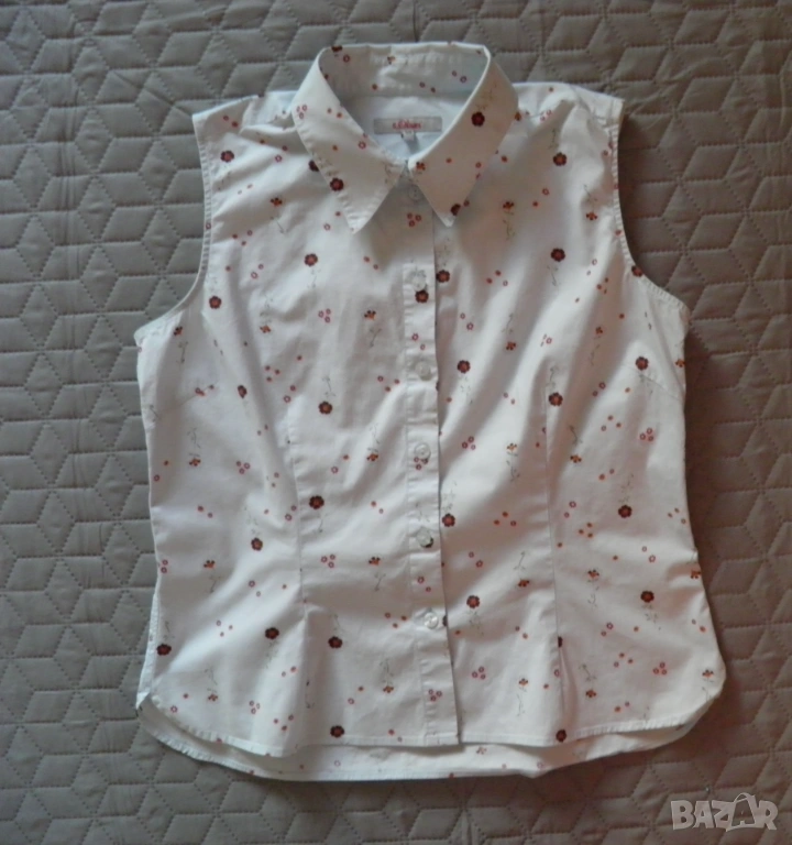 2. Риза sOliver без ръкав. Размер 40: дължина 58 см., ширина на раменете 35 см., гръдна обиколка 98 см., обиколка на талията 90 см. Мерките са в не разтегнато положение. Състав: 97% памук. 3% еластан. В отлично състояние.