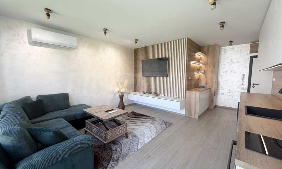 Апартаментът е напълно обзаведен и оборудван по поръчка, не е обитаван. Разполага с висок клас изолация, шумоизолация и 5-камерна дограма, оптичен интернет и smart home възможности.