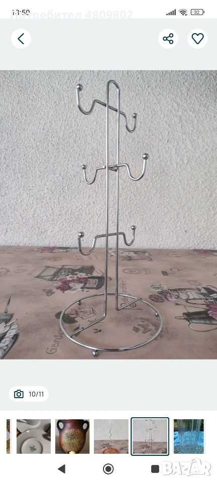 Стойка метална за 6 чаши. НОВА. Височина 35 см, диаметър 15 см.