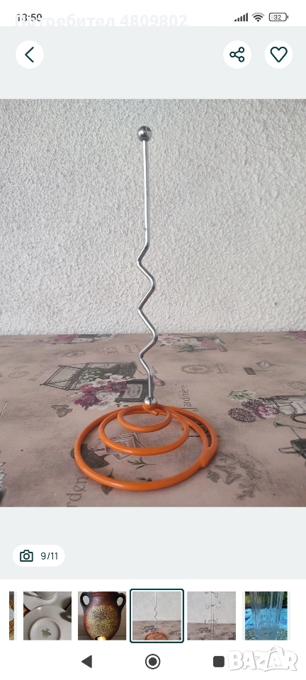 Стойка метална за кухненска хартия, основа тип спирала в оранжево. Употребявана. Височина 29 см, диаметър 13 см.