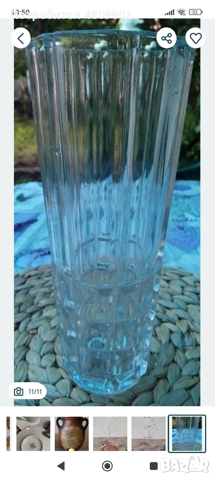 ВАЗА дебело стъкло. Височина 25 см. Диаметър при отвора 10 см. Без забележки!