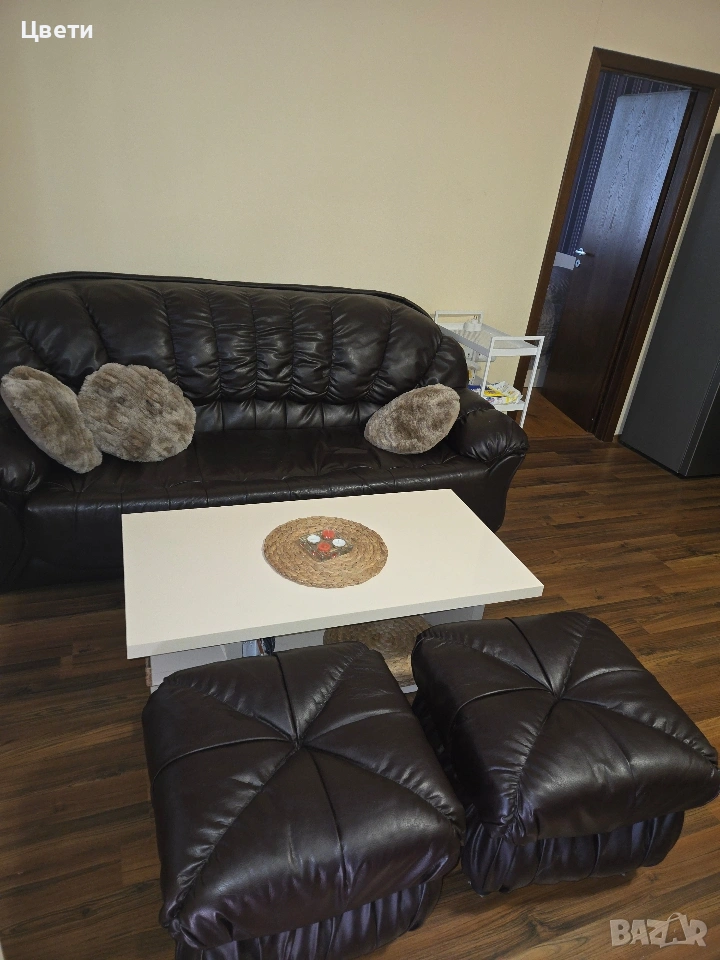 Диван разтегателен , еко кожа + две табуретки → Обява 54333330