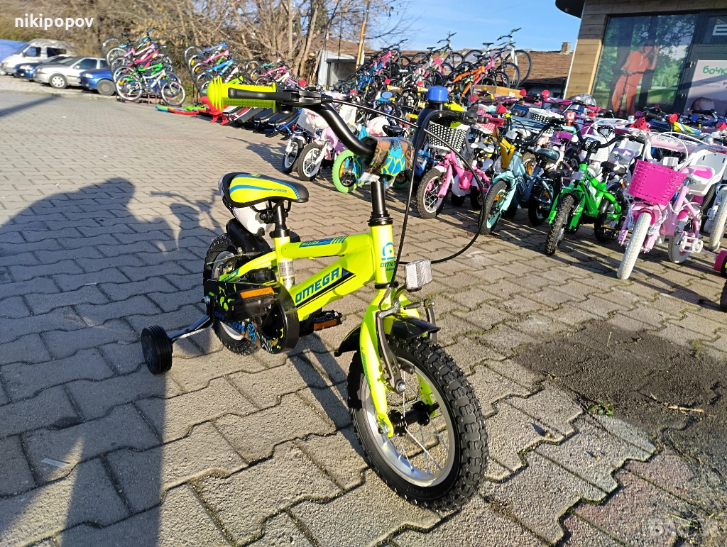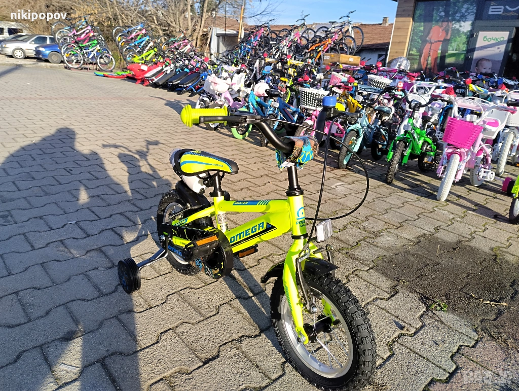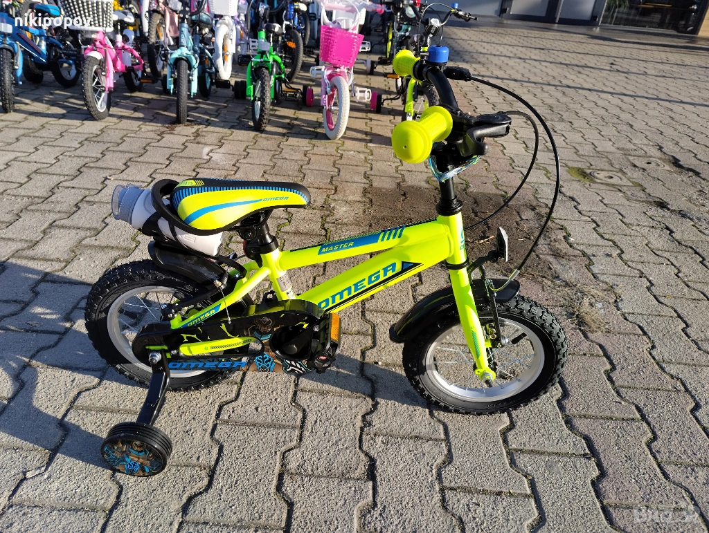 *Детският велосипед на Omega е един прекрасен избор за децата между 2 и 4-годишна възраст и височина от 80 до 100см. Може да се използва от деца, които още не са се научили да карат без помощни колела. Рамката е метална. Велосипедът е с алуминиеви капли и алуминиев държач на кормилото. Разполага с предна и задна V-brake спирачка, пластмасови калници и предпазител на веригата.