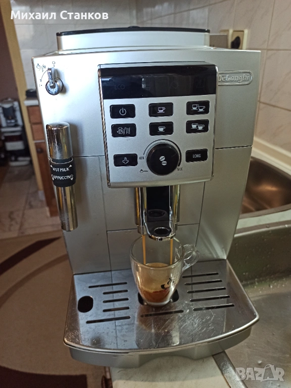 Кафе автомат Делонги работи перфектно и прави супер кафе с каймак
