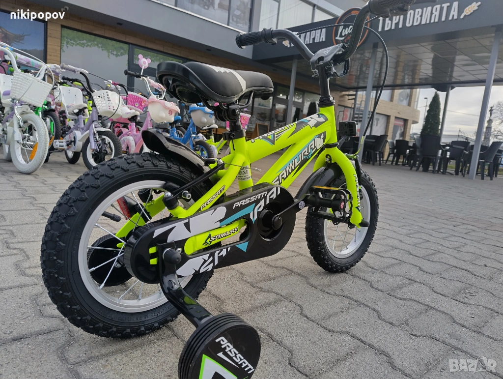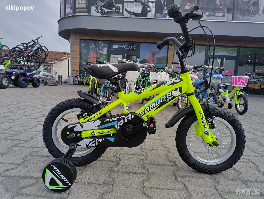 *Детският велосипед на Passati е един прекрасен избор за децата между 2 и 4-годишна възраст и височина от 80 до 100см. Може да се използва от деца, които още не са се научили да карат без помощни колела. Рамката е метална. Велосипедът е с алуминиеви капли и алуминиев държач на кормилото. Разполага с предна и задна V-brake спирачка, пластмасови калници и предпазител на веригата.