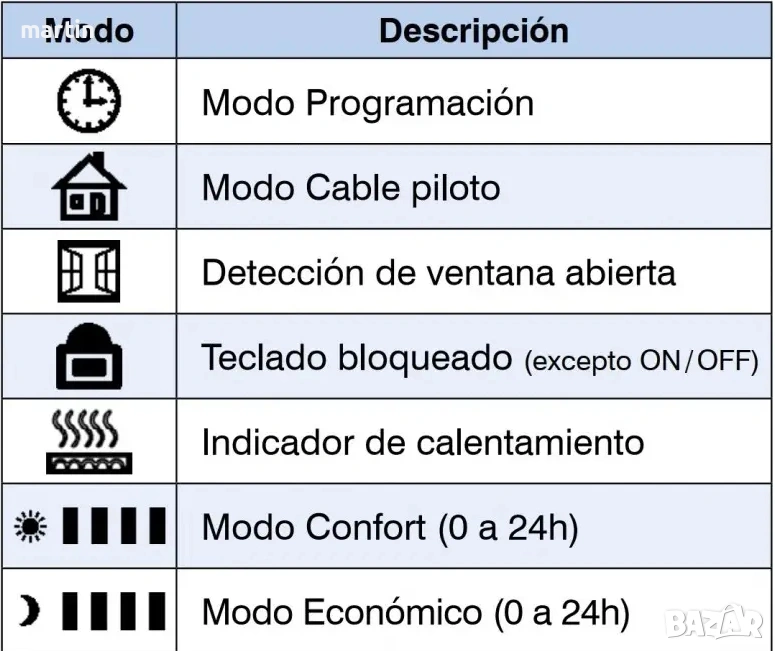 Включва таймер и интелигентни режими на работа: Run (Работа), Comfort (Комфорт), ECO (ЕКО), Anti-freeze (Против замръзване), Comfort 1 (Комфорт 1) и Comfort 2 (Комфорт 2). Освен това, нощният режим оптимизира консумацията на енергия, като поддържа комфортна температура, докато спите. Всичко се управлява лесно от цифровия панел с дисплей и интуитивни бутони.