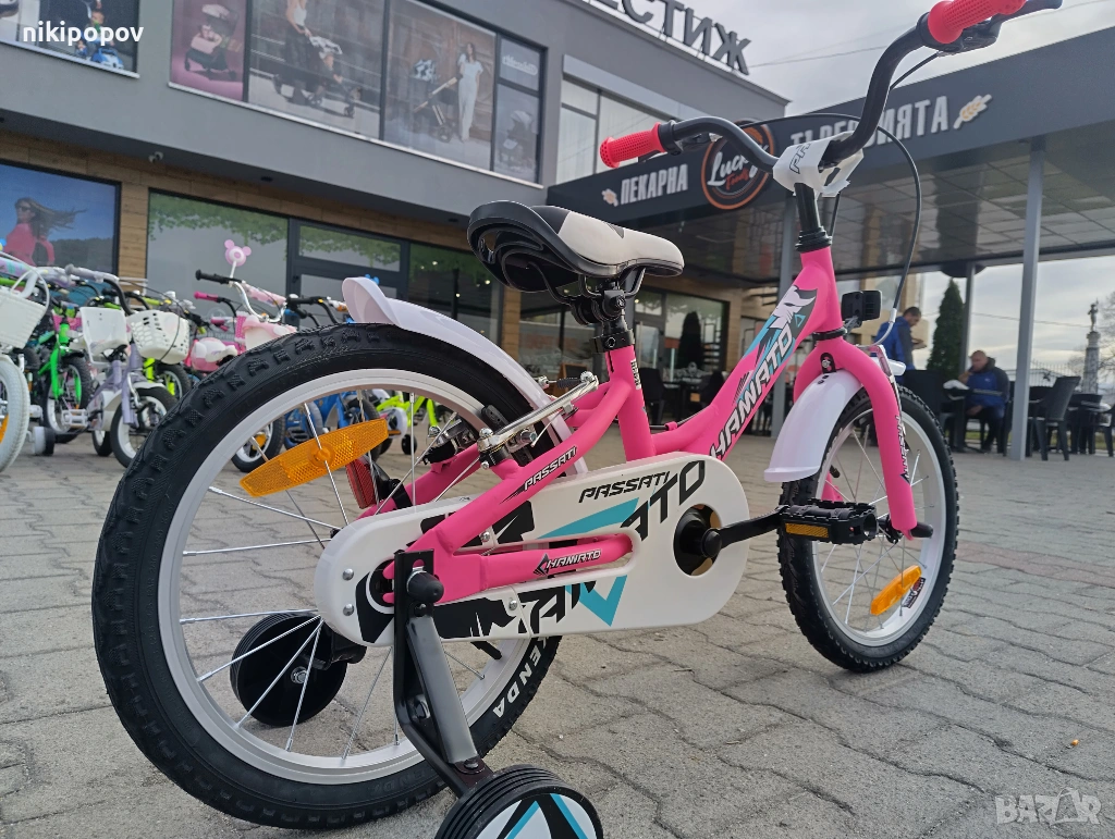 *Детският велосипед на Passati е един прекрасен избор за децата между 4 и 6-годишна възраст и височина от 100 до 120см. Возилото е снабдено с помощни колела, посредством които детето ще усъвършенства умението си да балансира на две гуми неусетно, докато се забавлява.