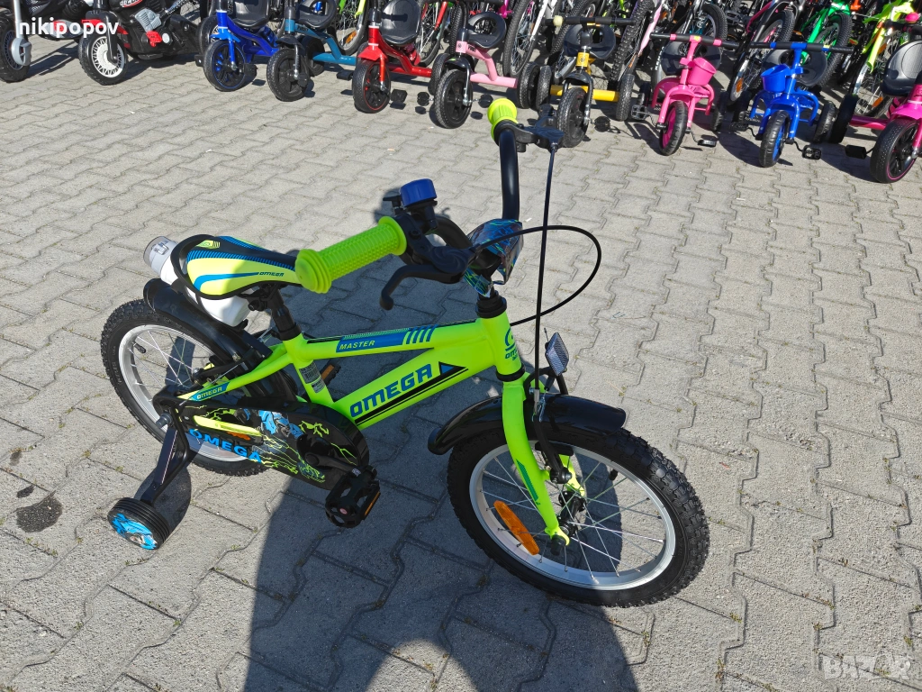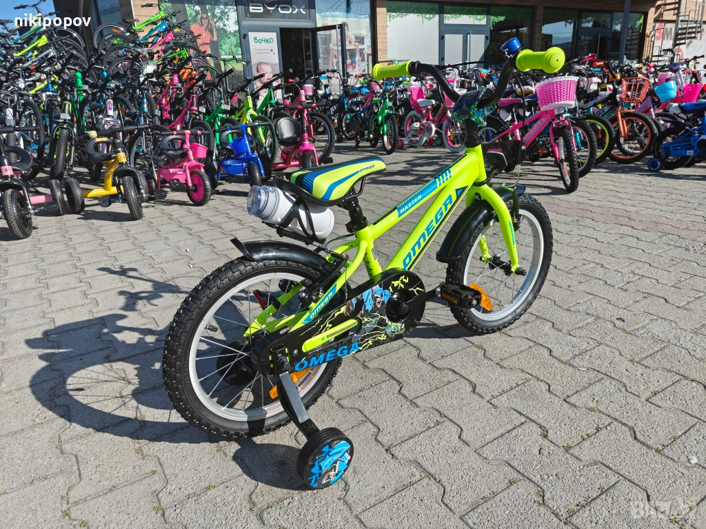 *Детският велосипед на Omega Bikes е един прекрасен избор за децата между 4 и 6-годишна възраст и височина от 100 до 120см. Возилото е снабдено с помощни колела, посредством които детето ще усъвършенства умението си да балансира на две гуми неусетно. Рамката е метална. Велосипедът е с алуминиеви капли. Разполага с предна и задна V-brake спирачка, пластмасови калници и предпазител на веригата.