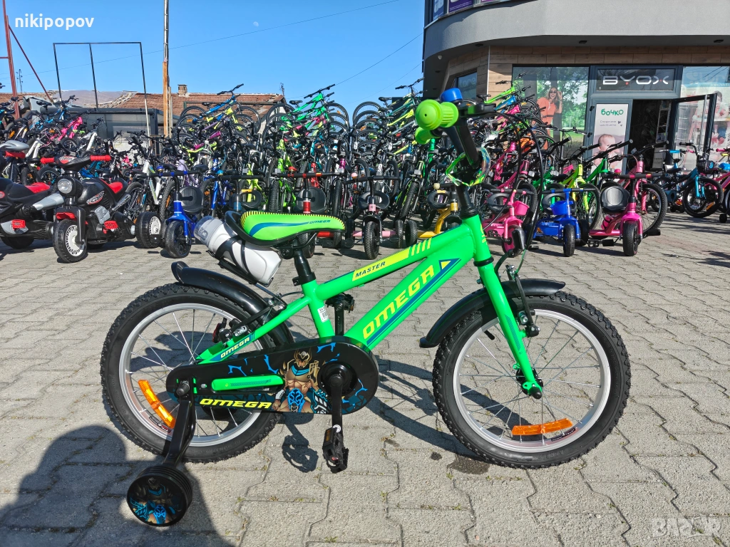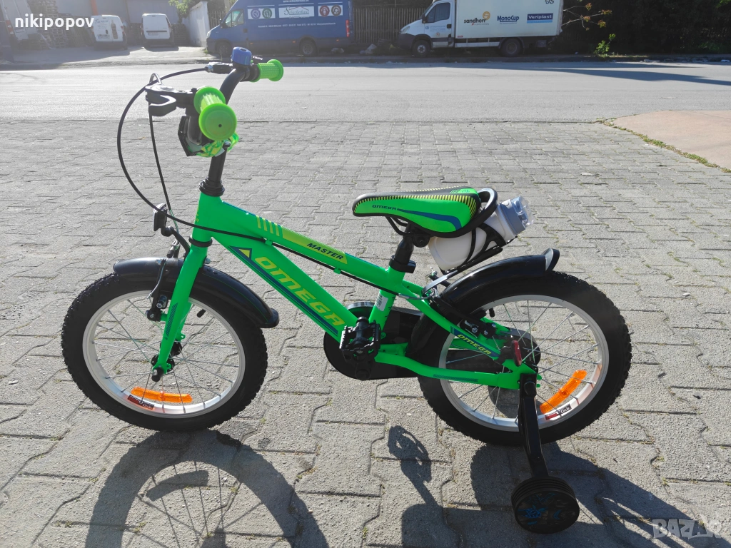 *Детският велосипед на Omega Bikes е един прекрасен избор за децата между 4 и 6-годишна възраст и височина от 100 до 120см. Возилото е снабдено с помощни колела, посредством които детето ще усъвършенства умението си да балансира на две гуми неусетно. Рамката е метална. Велосипедът е с алуминиеви капли. Разполага с предна и задна V-brake спирачка, пластмасови калници и предпазител на веригата.