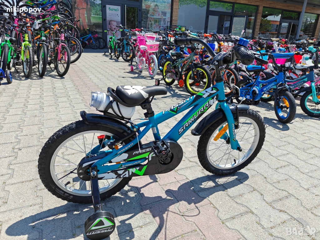 *Детският велосипед на Passati е един прекрасен избор за децата между 4 и 6-годишна възраст и височина от 100 до 120см. Возилото е снабдено с помощни колела, посредством които детето ще усъвършенства умението си да балансира на две гуми неусетно, докато се забавлява.