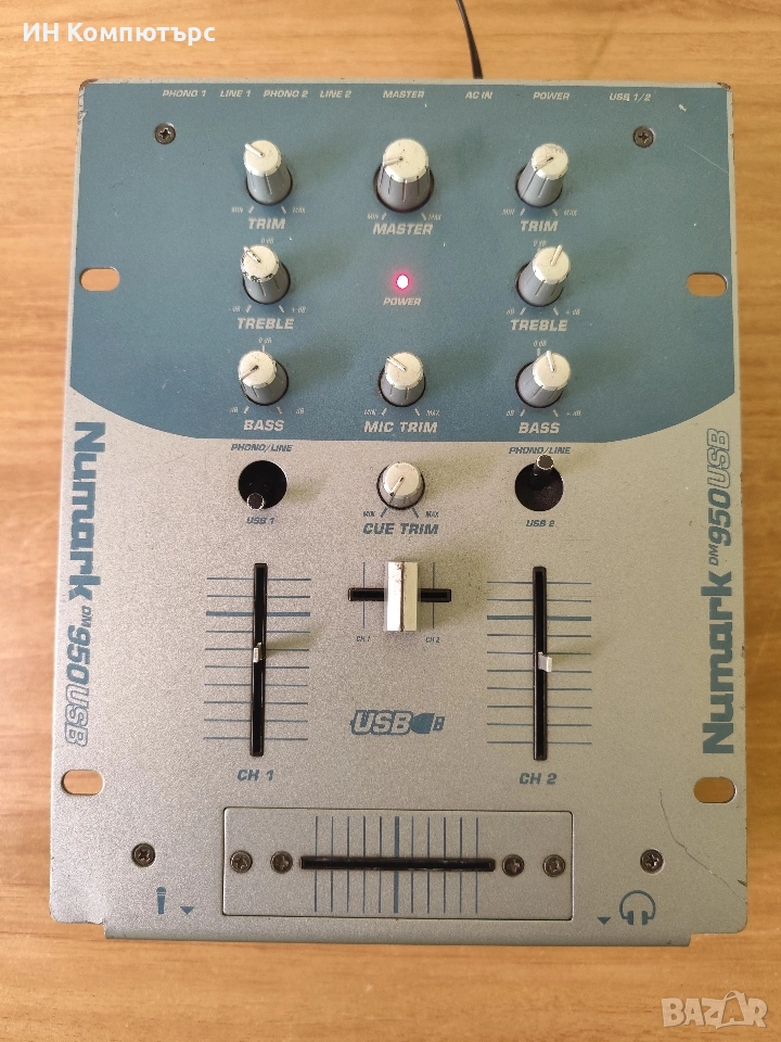 Numark DM950USB е по-нов вариант на серията DM (след DM905), като добавя USB връзка към компютър – нещо доста важно за времето си (около 2005 г.).