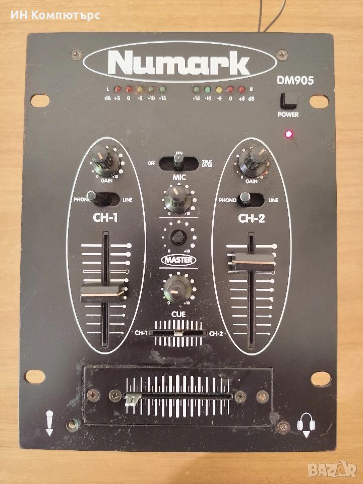 Numark DM905 (Blue Dog) е класически 2-канален DJ миксер от края на 90-те (около 1999 г.), предназначен за работа с грамофони, CD плеъри и други аудио източници.