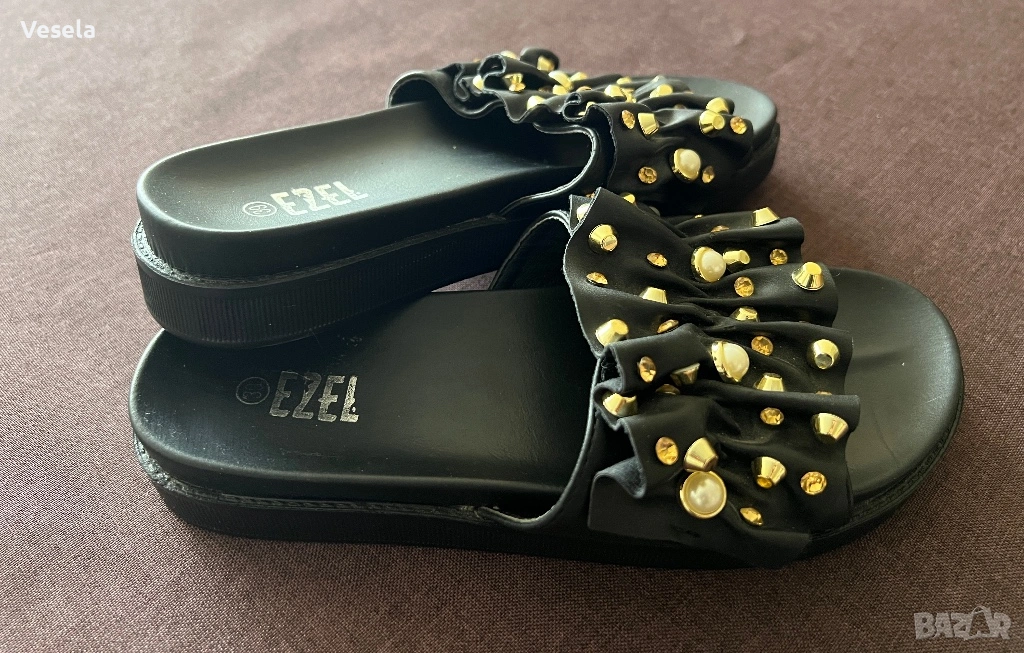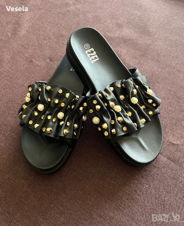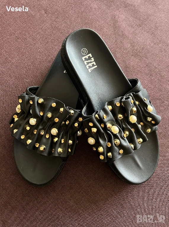 4. Кожени черни чехли с капси и камъчета - 39 номер (нови).