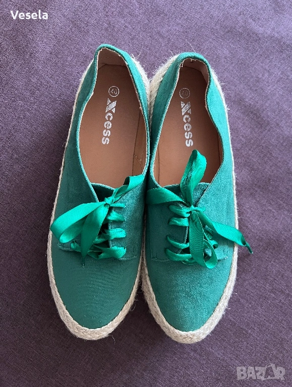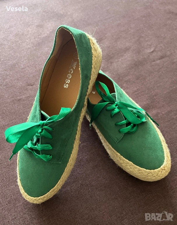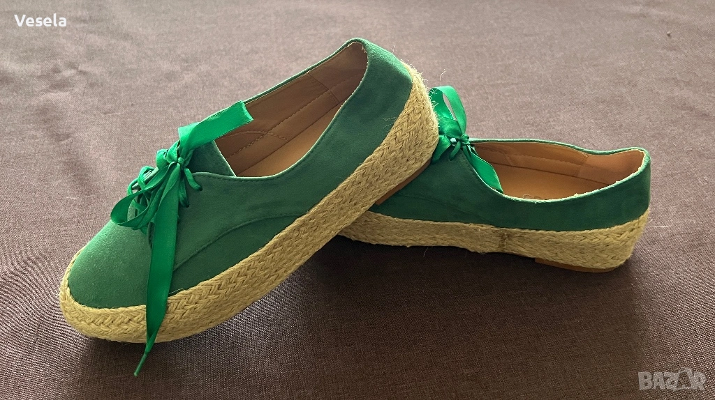 1. Зелени велурени обувки, тип еспадрили - 40 номер (нови).