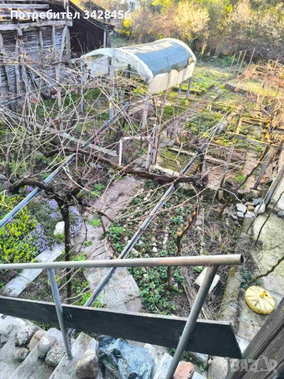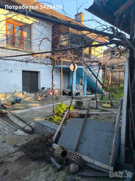 Имотът е с двор около 480кв.м, поддържан и добре организиран – с обособени цветни градинки, зеленчукова градина, оранжерия и допълнително пространство, използвано в миналото за отглеждане на животни.