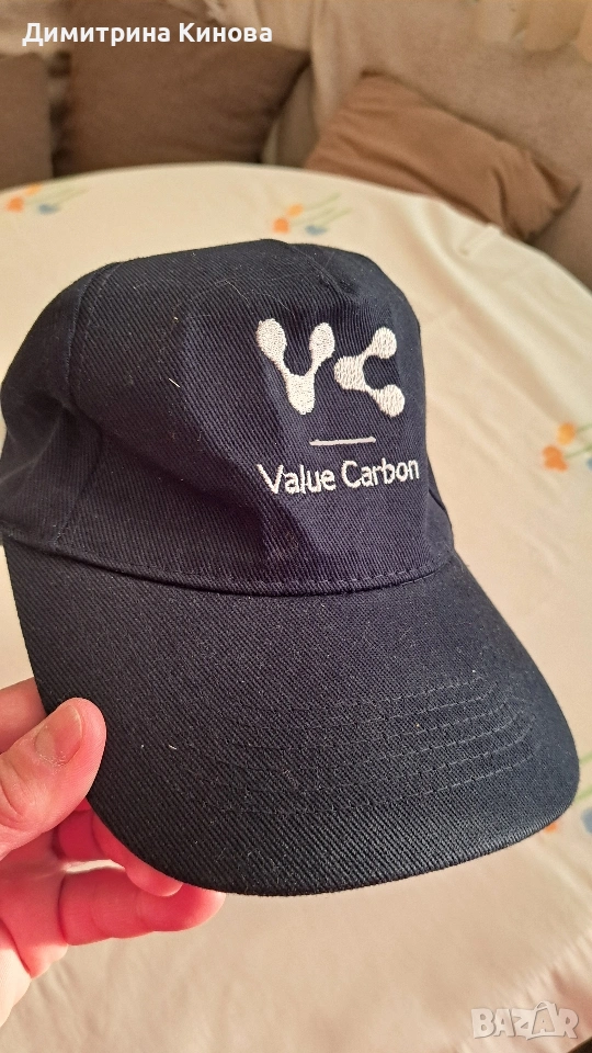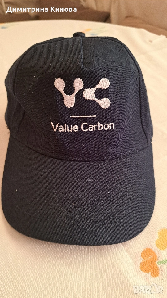 Тъмносиня бейзболна шапка с логото на компанията Value Carbon. 100 % памук Нова с етикет