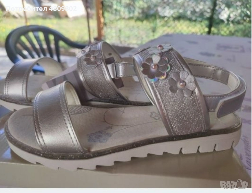 САНДАЛИ чисто НОВИ с етикета. Номер 36. Цвят сребърно и бяло. Стелка естествена кожа с дължина 23.5 см. Цена 13 €.