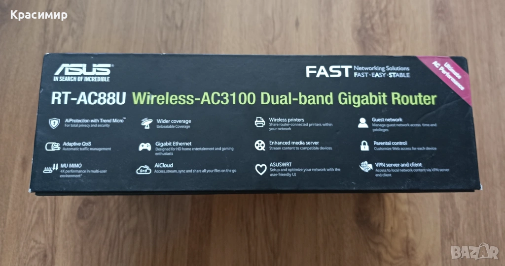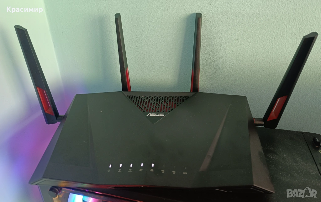 Продавам мощен и качествен рутер ASUS RT-AC88U, подходящ за големи жилища, офиси, гейминг, стрийминг, NAS устройства, смарт телевизори и много свързани устройства едновременно.