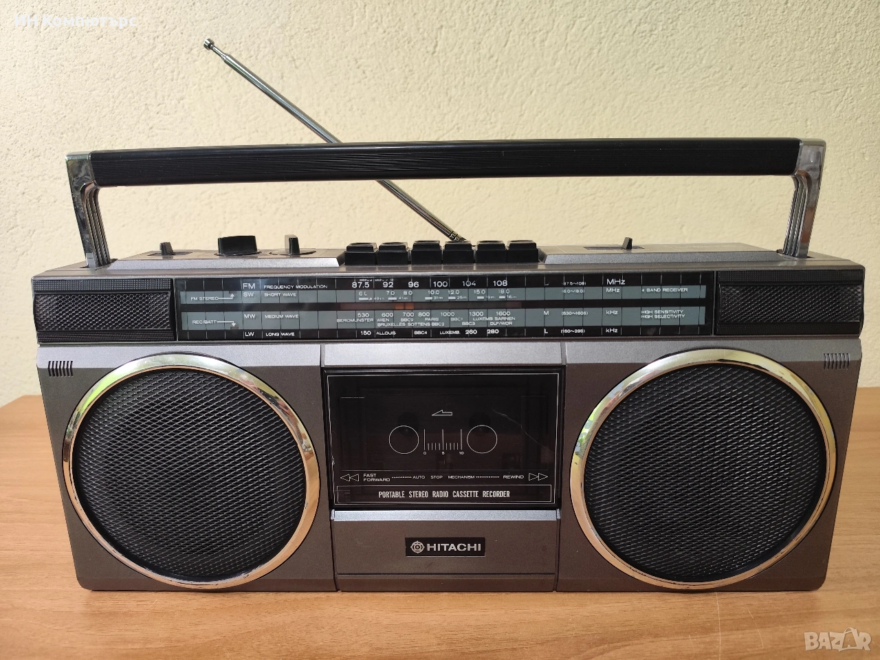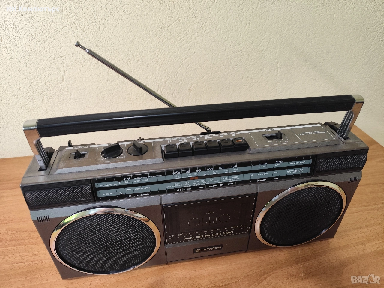 Hitachi TRK-6880E е класически ретро радиокасетофон (boombox) от златната ера на 80-те години.