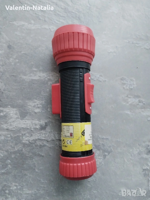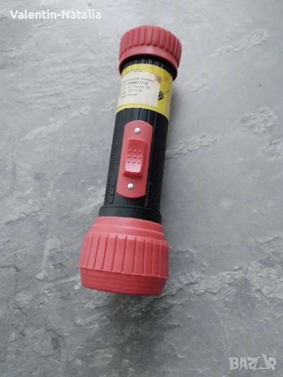 Моделът е класически, изработен от устойчива пластмаса.Отстрани има вграден магнит за закрепване към метални повърхности.Фенерът е запазен без следи от употреба.