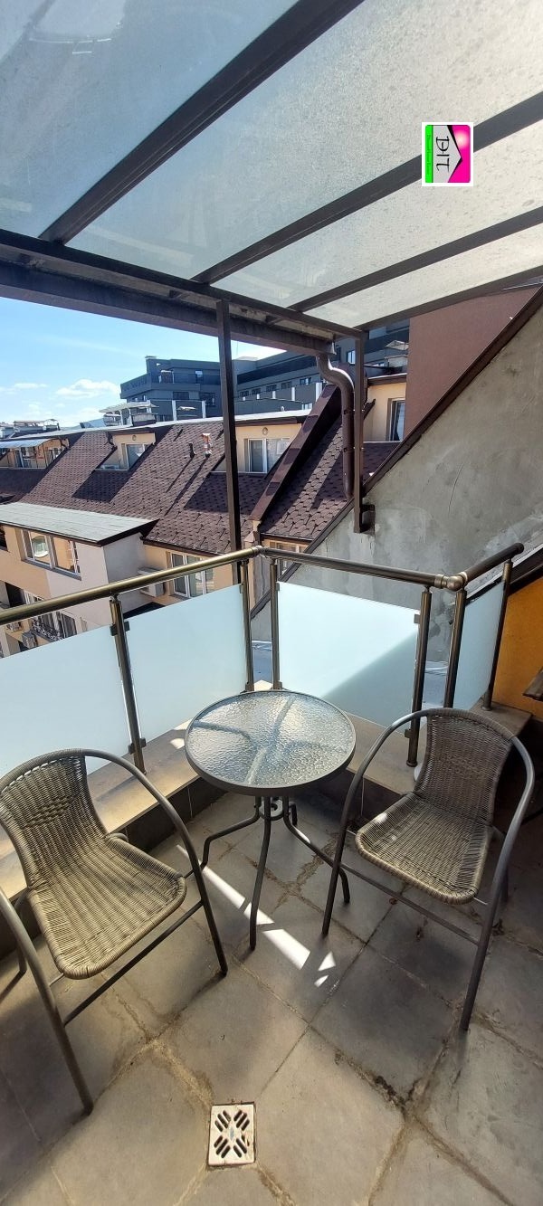 Разпределението на имота е: антре, просторна дневна с кухненски бокс, преход към родителска спалня, отделна детска стая, 2 бани с WC, едната с вана, 2 прекрасни тераси. Изложението на дневната е югоизточно, на стаите северозападно. Апартаментът е изцяло обзаведен с всичко необходимо за живеене, уютен и функционален. Чудесен имот за семейство с дългосрочни намерения.