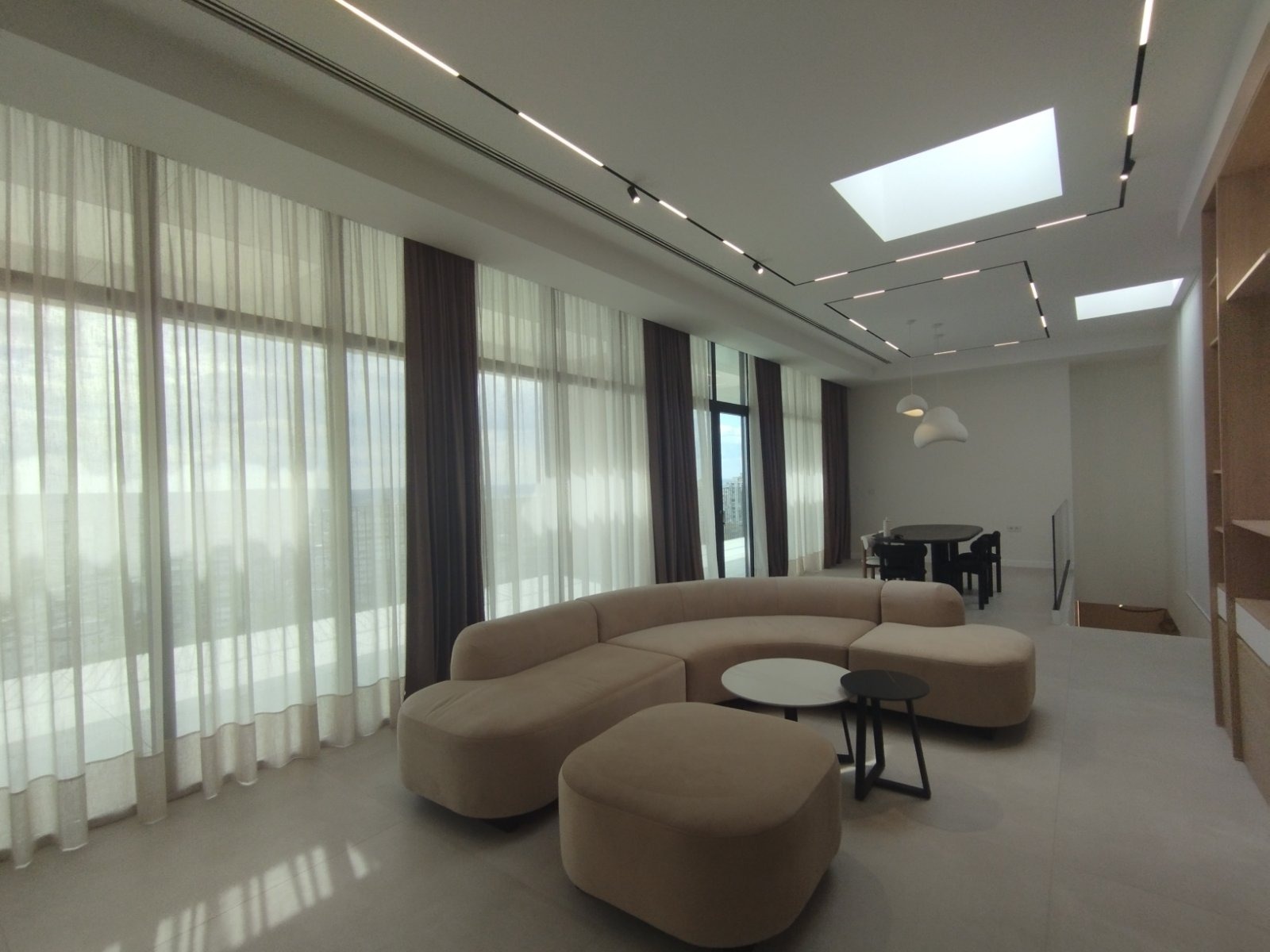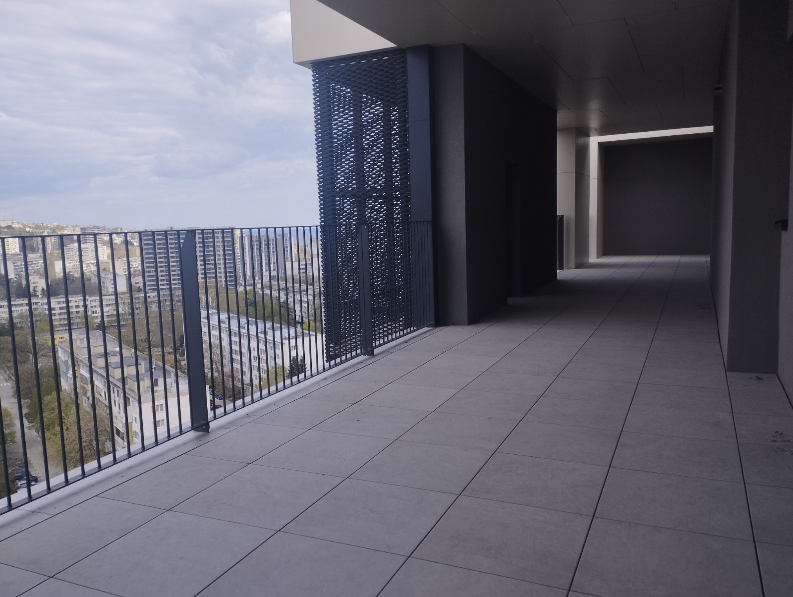 Впечатляваща панорамна тераса, обгръщаща целия апартамент и разкриваща 360 гледки.