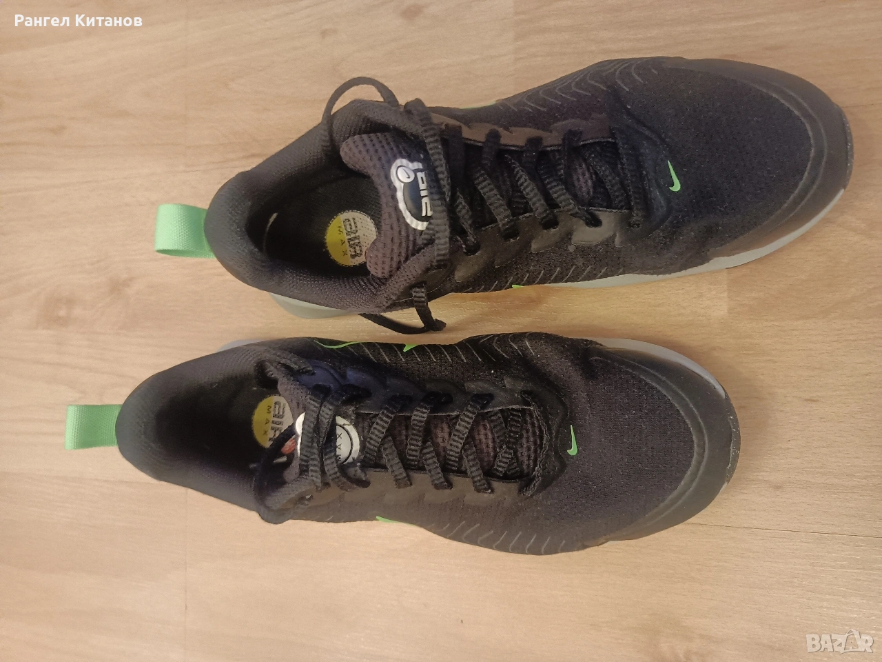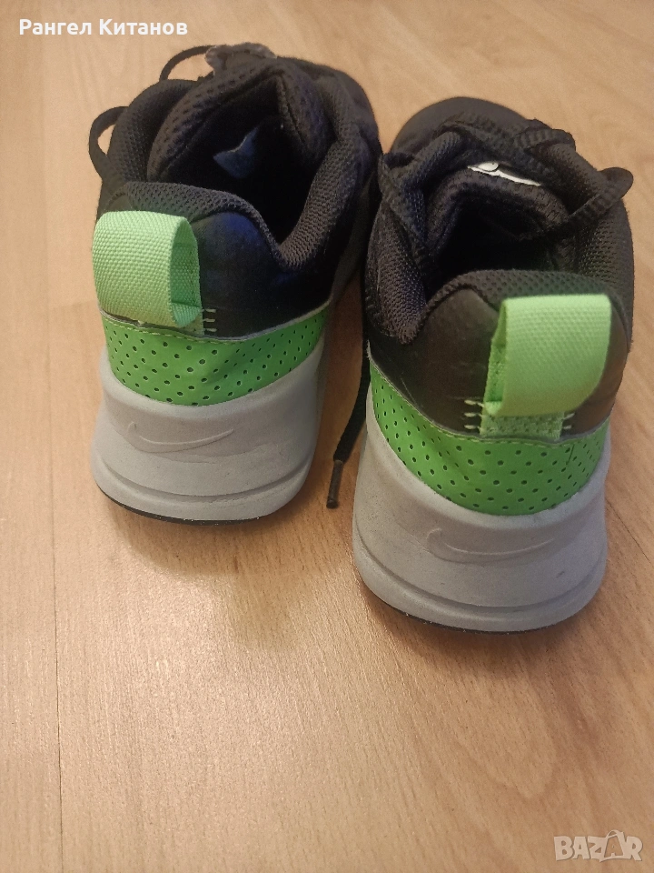 Nike Air Max Nuaxis в цветова комбинация "Black/Anthracite/Wolf Grey/Green Strike" (Продуктов код: HV5754-010). Този модел е вдъхновен от дизайна на емблематичния Air Max 270 и е част от инициативата на Nike "Move to Zero", която се фокусира върху използването на рециклирани материали. Основни характеристики: Омекотяване: Оборудвани са с видима въздушна камера Max Air в петата, която абсорбира ударите и осигурява комфорт през целия ден. Материали: Горната част е изработена от дишаща мрежеста материя (mesh) за по-добра вентилация, допълнена от безшевни TPU елементи за по-голяма стабилност и здравина. Сцепление: Гумената подметка предлага устойчивост и добро сцепление при различни повърхности.