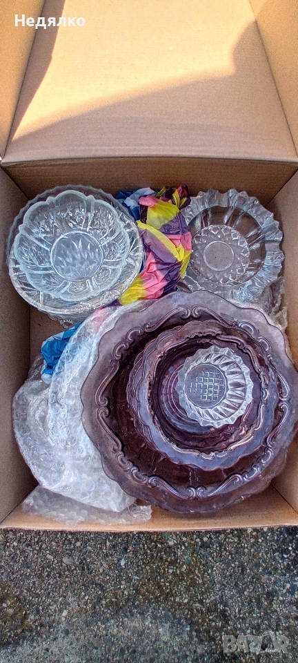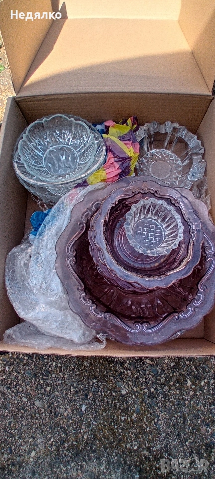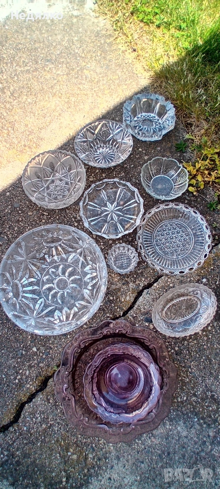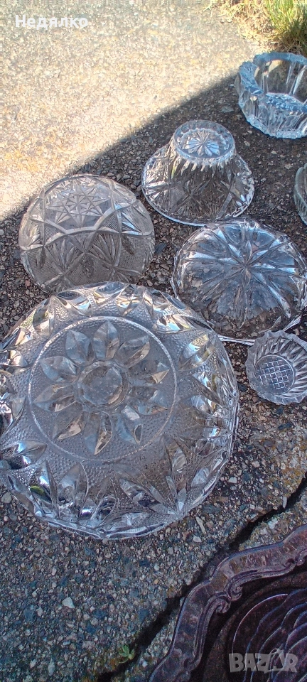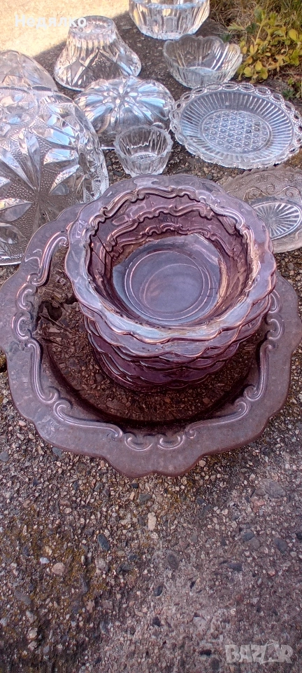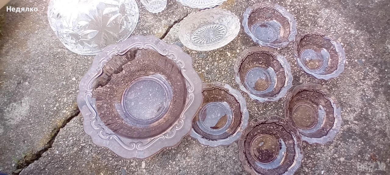 Повечето не са ползвани,като лилавия сервиз, пепелник,голяма и малки фруктиери са кристални, 2-3 дребни само са стъкло. Цена за всички.
