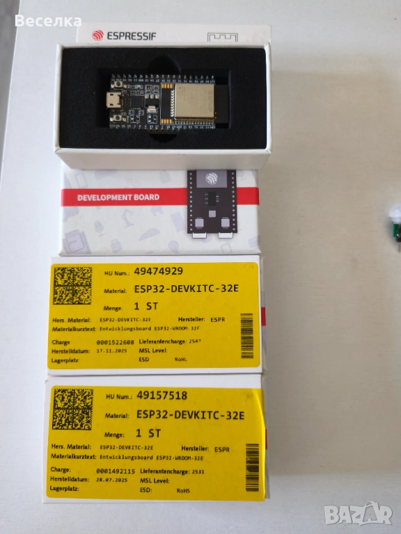 - 3 броя ESP32-DevKitC-32E (Espressif):